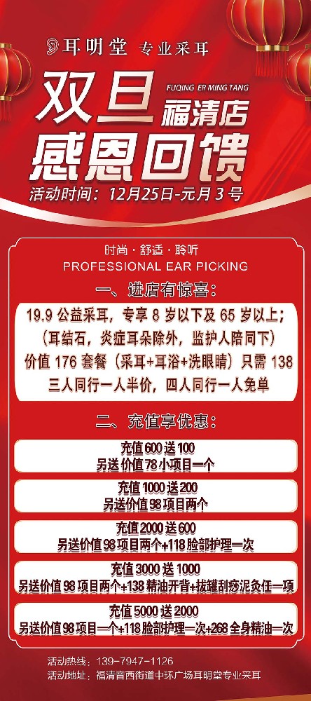 19.9 公益采耳,专享 8 岁以下及 65 岁以上;(耳结石,炎症耳朵除外,监护人陪同下)