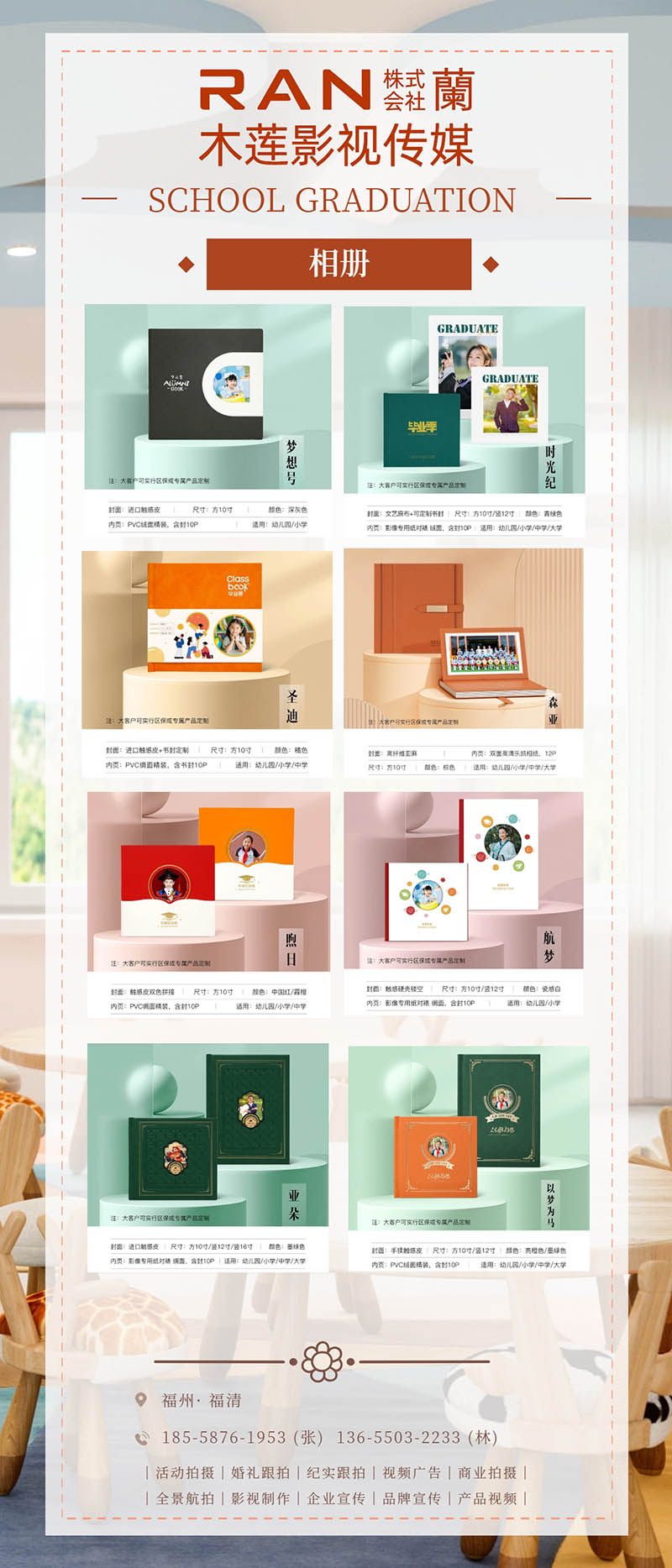 幼儿园毕业季毕业照,相册可选,集体照,相册,大头照,航拍,花絮,微电影,采访,活动拍摄,婚礼跟拍,寿宴跟拍,株式会社蘭,晨轩广告,福清生活网,中日商贸网,日中商贸网,fdccbd,联系我们