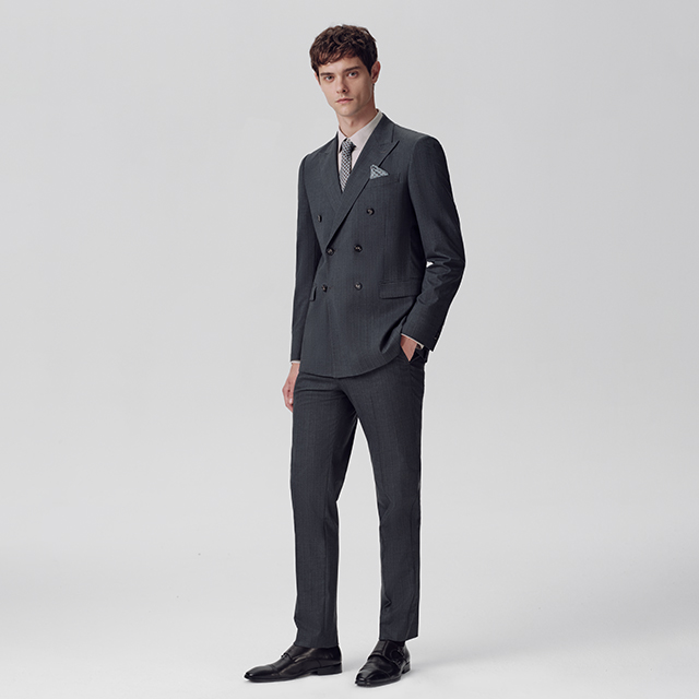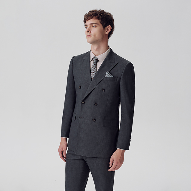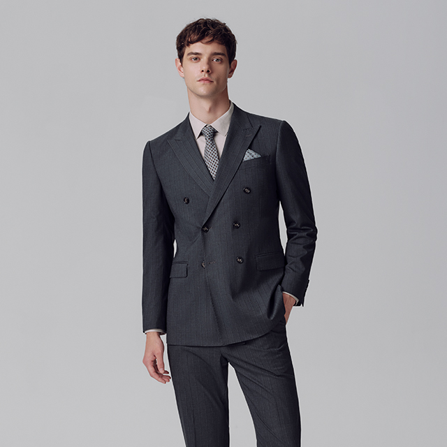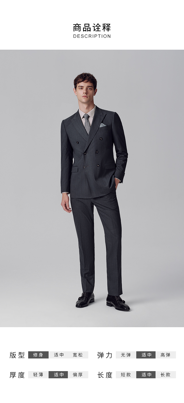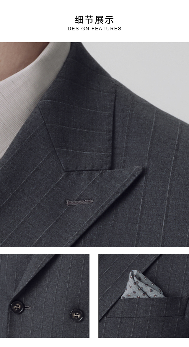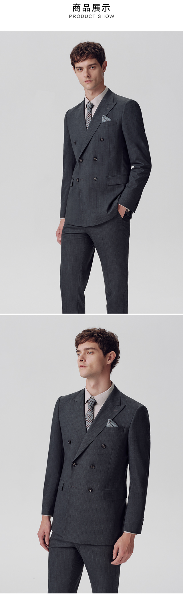 关键词:深灰,条纹,双排扣,西装,两件套,株式会社蘭,青云系列,服装定制,男装