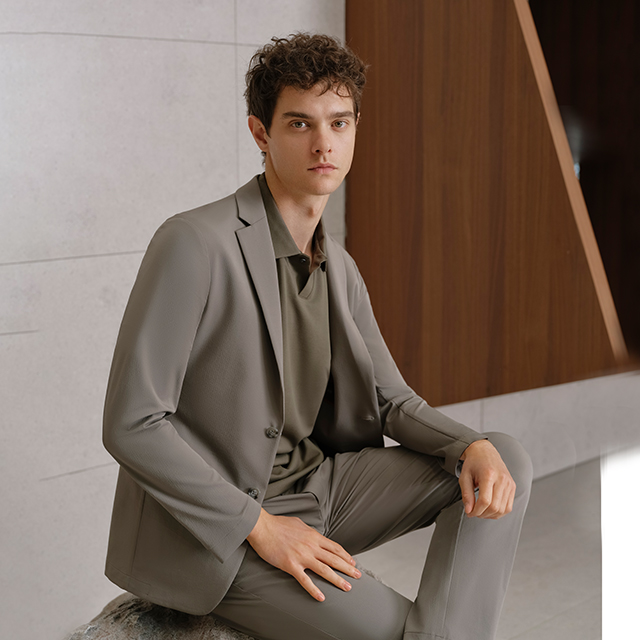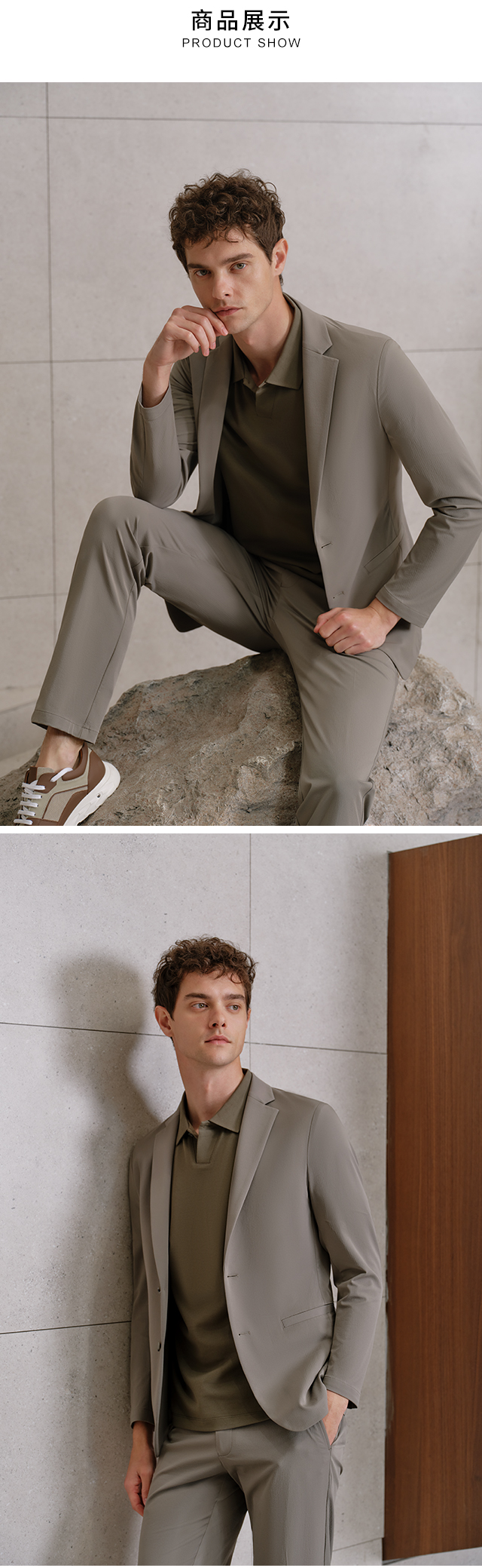 关键词:株式会社蘭,青云系列,卡其色,通勤,西装,两件套,男装定制,男装,