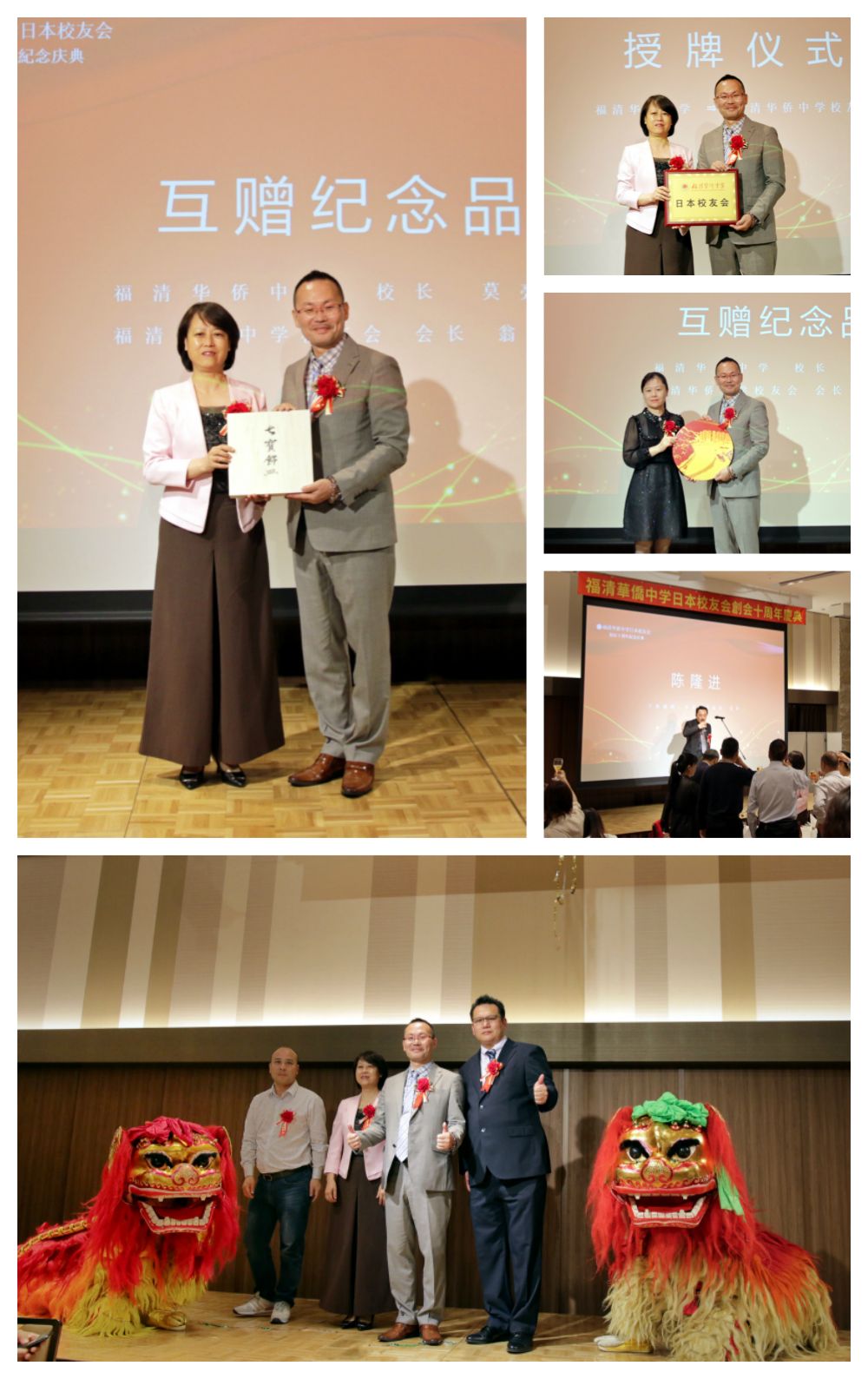 中文导报讯(记者 杨文凯)福清华侨中学日本校友会创会十周年庆典,5月25日晚在上野不忍池畔的东天红盛大举行。庆典回顾了校友会的十年历程,来自福清教育局和侨校的代表到场祝贺。侨中莫亮华书记向校友会第六任会长翁成龙及理事会举行了任命和授牌仪式。侨中校友会在中日各界嘉宾的见证下,在校友的欢歌笑语中开启新的十年。