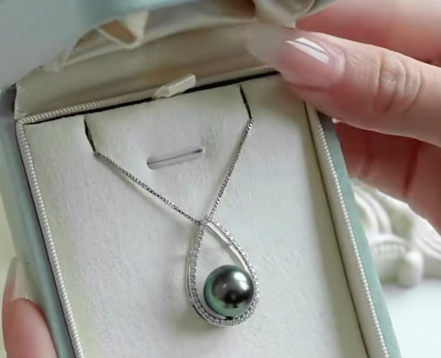 珍珠的书信语言 18k金钻石镶嵌黑珠吊坠 孔雀绿超级漂... http://xhslink.com/o/9vrY1zCKNhm